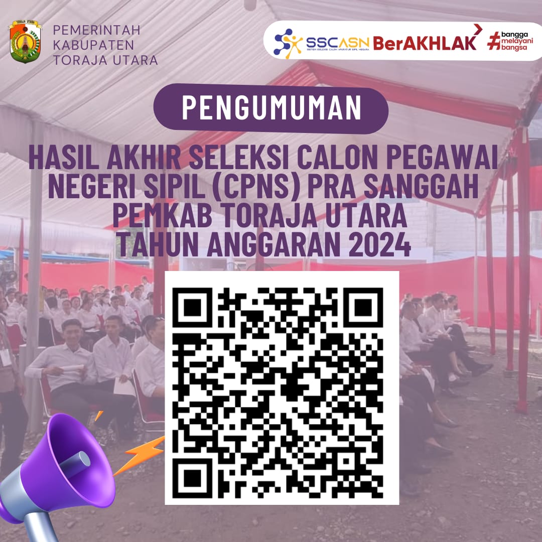 Menindaklanjuti surat Wakil Kepala Badan Kepegawaian Negara selaku Ketua Tim Pelaksana Seleksi Nasional Pengadaan CASN 2024 Nomor : 775/B-KS.04.03/SD/K/2025 tanggal 09 Januari 2025 perihal Penyampaian Hasil Seleksi CPNS Tahun 2024, dengan ini kami informasikan hal-hal sebagai berikut :