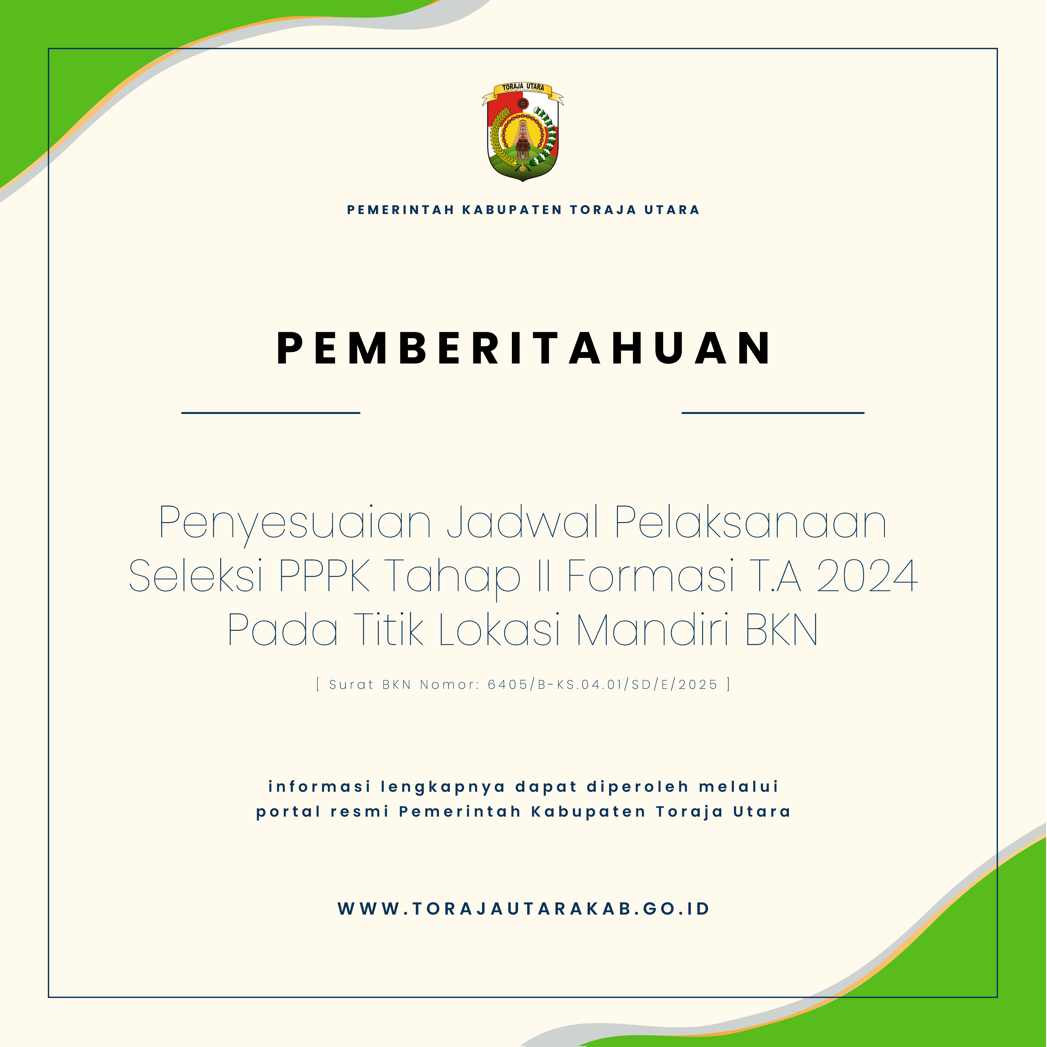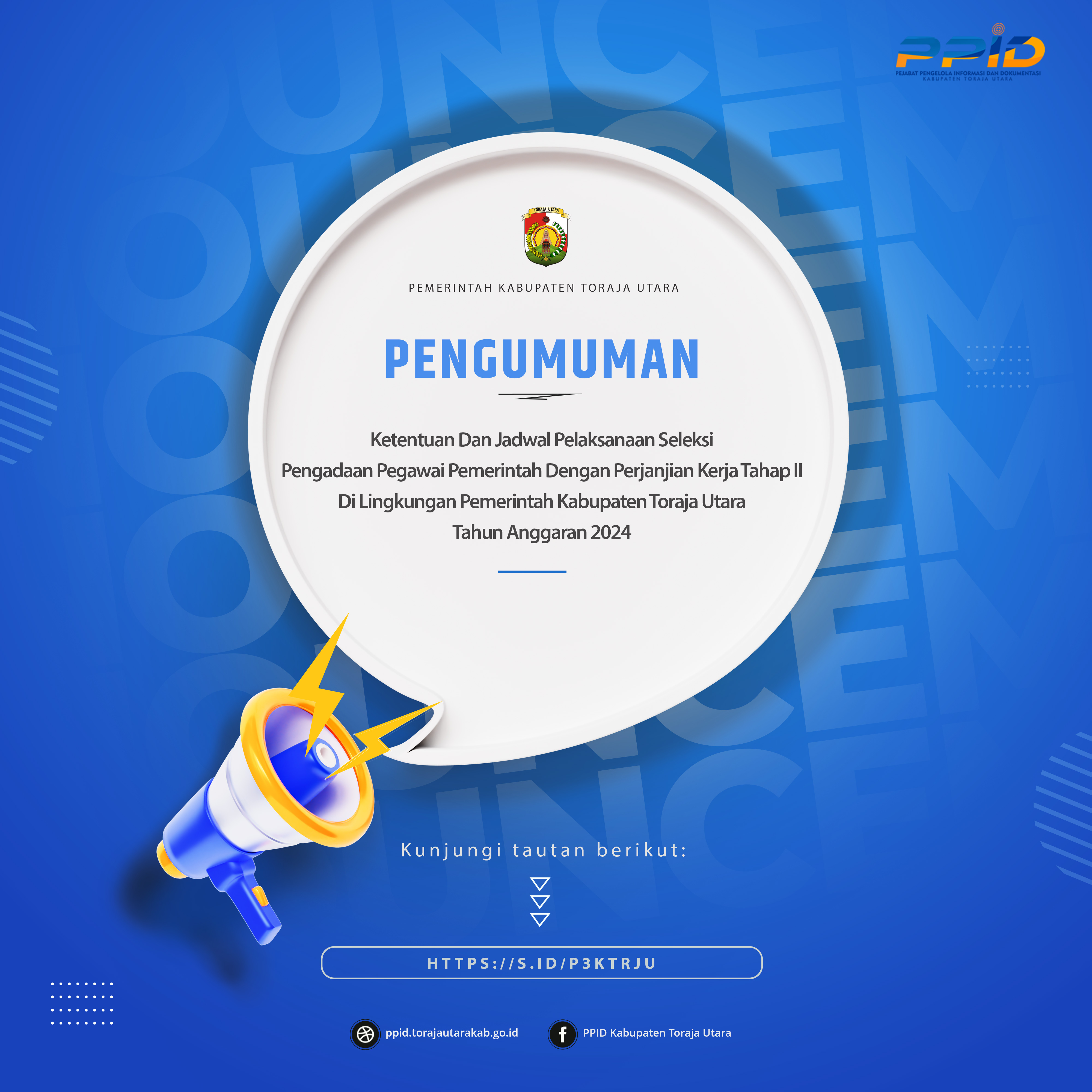 Pemerintah Kabupaten Toraja Utara mengumumkan Ketentuan dan Jadwal Pelaksanaan Seleksi Pengadaan Pegawai Pemerintah dengan Perjanjian Kerja (PPPK) Tahap II Tahun